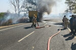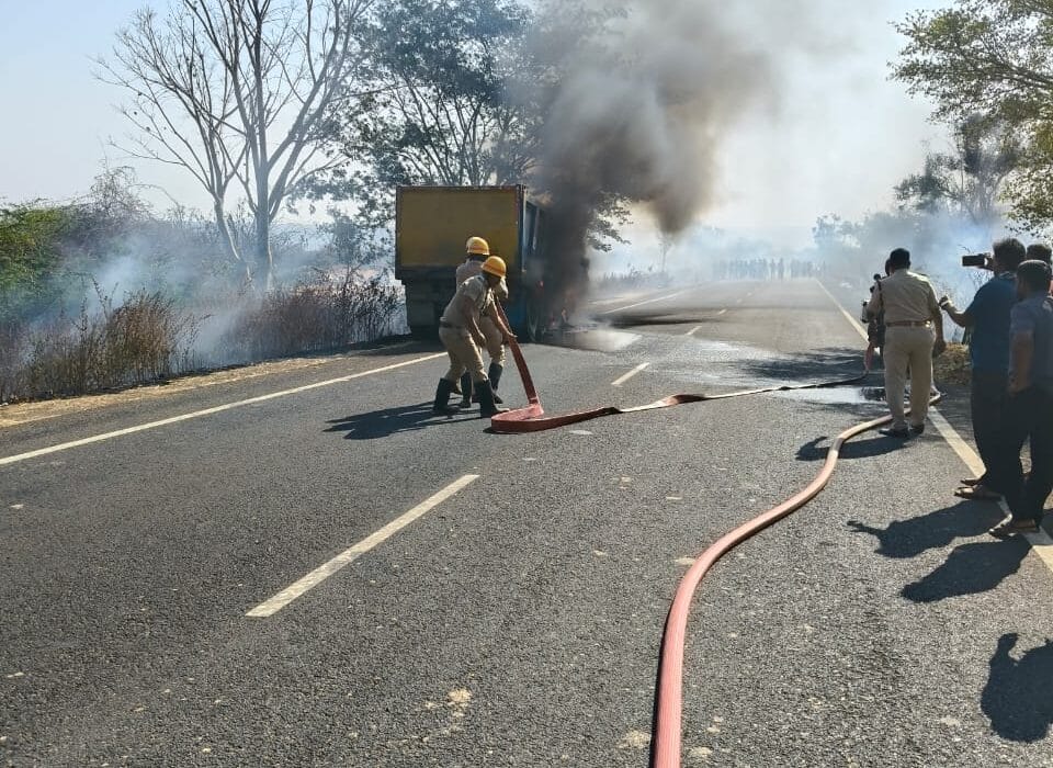 ಬೆಳಗಾವಿ ಜಿಲ್ಲೆ ರಾಮದುರ್ಗ ತಾಲ್ಲೂಕಿನ ಮುದಕವಿ ಗ್ರಾಮದ ರಾಮದುರ್ಗ -ಬದಾಮಿ ರಸ್ತೆಯಲ್ಲಿ ಸುರೇಶ ಭರಮಗೌಡ ಪಾಟೀಲ ಎಂಬುವವರರಿಗೆ ಸೇರಿದ ಕಡಿ ತುಂಬಿದ ಟಿಪ್ಪರಿಗೆ ಬೆಂಕಿ ತಗುಲಿದ್ದು , ಜಲವಾಹನದಲ್ಲಿ ಅಗ್ನಿಶಾಮಕ ಠಾಣಾಧಿಕಾರಿರವಾರಾದ ಮಲ್ಲಪ್ಪ ಕವಡಿ, ವೆಂಕಟೇಶ ಕಾಡರ ,ಚಾಲಕರರಾದ ಮಹ್ಮದಾರಿಪ್ ಫಿರಜಾದೆ ,ಪ್ರಕಾಶ ಮೇಟಿ,ಅಗ್ನಿಶಾಮಕರಾದ ವಿನೋದ ಮುರಗೋಡ,ಆನಂದ ಬಂಡಿವಡ್ಡರ, ಶಂಕರ ಲಮಾಣಿ ರವರುಗಳು ಅಗ್ನಿ ಕರೆ ಸ್ಥಳಕ್ಕೆ ಧಾವಿಸಿ ಬೆಂಕಿಯನ್ನು ಸಂಪೂರ್ಣವಾಗಿ ನಂದಿಸಿ ಅಪಾರ ಪ್ರಮಾಣದ ಹಾನಿಯನ್ನು ತಡೆದಿರುತ್ತಾರೆ,ಯಾವದೇ ರೀತಿಯ ಪ್ರಾಣಪಾಯ ಗಾಯಾಳುಗಳು ಸಂಭವಿಸಿರುವದಿಲ್ಲಾ