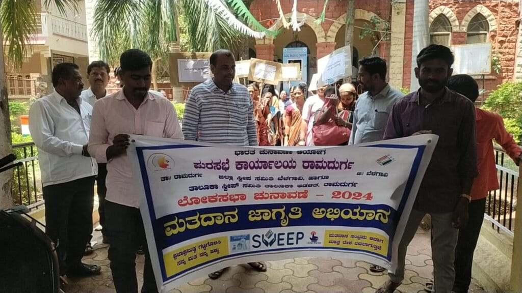 ರಾಮದುರ್ಗ ಪಟ್ಟಣದ ಪುರಸಭೆ ಆವರಣದಲ್ಲಿ ಜಿಲ್ಲಾಡಳಿತ ಹಾಗೂ ತಾಲೂಕ ಸ್ವಿಪ್ ಸಮಿತಿಯಿಂದ ಆಯೋಜಿಸಲಾಗಿದ್ದ ಮತದಾನ ಜಾಗೃತಿ ಅಭಿಯಾನಕ್ಕೆ ಪುರಸಭೆ ಮುಖ್ಯಾಧಿಕಾರಿಗಳಾದ ಈರಣ್ಣ ಕೆ ಗುಡದಾರಿರವರು ಸೆಲ್ಪಿ ಸ್ಟ್ಯಾಂಡ ನಲ್ಲಿ ಪೋಟೋ ತಗೆದುಕೊಳ್ಳುವದರ ಮೂಲಕ ಮತದಾನ ಜಾಗೃತಿ ಅಭಿಯಾನಕ್ಕೆ ಚಾಲನೆ ನೀಡಿ ಮಾತನಾಡಿ ಮತದಾನ ಪ್ರತಿಯೊಬ್ಬ ಪ್ರಜೇಯ ಹಕ್ಕು ಪ್ರತಿಯೊಬ್ಬರು ಕಡ್ಡಾಯವಾಗಿ ಮತದಾನ ಮಾಡಬೇಕು.ಮತ್ತು ತಾಲೂಕಿನಲ್ಲಿ ಅಧಿಕಾರಿಗಳು ವಿವಿಧ ರೀತಿಯ ಮತದಾನ ಜಾಗೃತಿ ಅಂದರೇ ಮಾರ್ಚ್ ಕ್ಯಾಂಡಲ್. ಮನೆ-ಮನೆಗೆ ಪಾಂಪ್ಲೆಟ್ ಹಂಚುವುದು ಈ ರೀತಿಯಲ್ಲಿ 7-8 ಜಾಗೃತಿ ಕಾರ್ಯಕ್ರಮಗಳನ್ನು ಹಮ್ಮಿಕೊಳ್ಳಲಾಗುತ್ತಿದ್ದು . ಒಟ್ಟಿನಲ್ಲಿ ಪ್ರತಿಯೊಬ್ಬರೂ ಮತದಾನ ಮಾಡಲಿ ಎಂಬುದು ನಮ್ಮ ಉದ್ದೇಶವಾಗಿದೆ ಎಂದು ನುಡಿದರು. ನಂತರ ಅವರು ಪುರಸಭೆ ಸಿಬ್ಬಂದಿ ಹಾಗೂ ಸಾರ್ವಜನಿಕರಿಗೆ ಮತದಾನದ ಪ್ರತಿಜ್ಞಾವಿಧಿ ಬೋದಿಸಿದರು. ಅದರ ಜೊತೆ ಅಧಿಕಾರಗಳು ಮತ್ತು ಸಾರ್ವಜನಿಕರ ಸಹಿ ಸಂಗ್ರಹಿಸಿ ರಾಮದುರ್ಗ ಪಟ್ಟಣದ ಪ್ರಮುಖ ಬೀದಿಯಲ್ಲಿ ಜಾಥಾ ವಾಹನ ಸಂಚರಿಸಿ ಜಾಗೃತಿ ಮೂಡಿಸಿದರು.