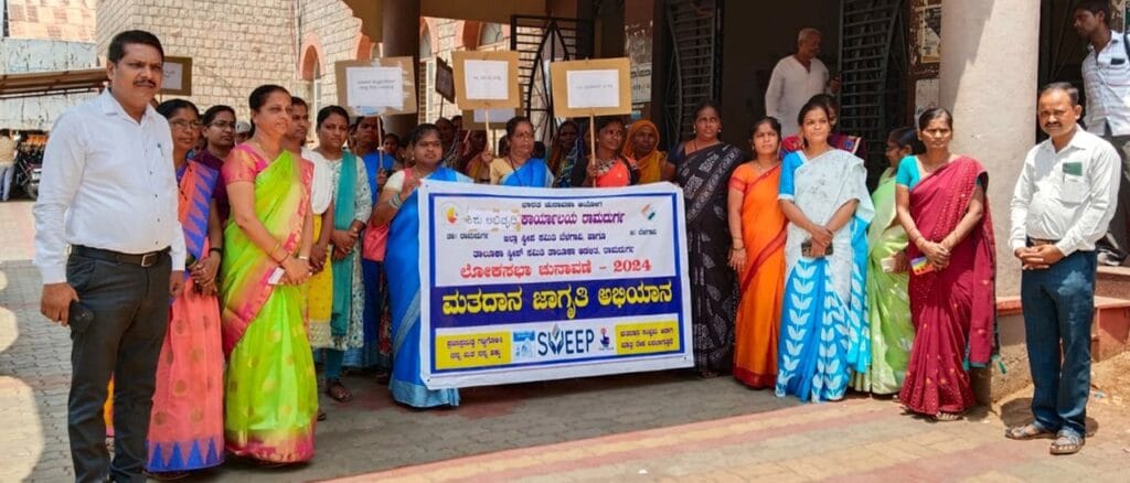 ಪಟ್ಟಣದ ಮಿನಿ ವಿಧಾನಸೌಧ ಆವರಣದಿಂದ ಹೊರಟ ಮತದಾನ ಜಾಗೃತಿ ಜಾಥಾ ಪಟ್ಟಣದ ಪ್ರಮುಖ ಬೀದಿಗಳಲ್ಲಿ ಸಂಚರಿಸುತ್ತಾ ಹಳೇ ಬಸ್ ನಿಲ್ದಾಣದ ಹತ್ತಿರ ಮಾನವ ಸರಪಳಿ ನಿರ್ಮಿಸಿ, ಕಡ್ಡಾಯ ಮತದಾನ ಘೋಷಣೆ ಕೂಗಿದರು.