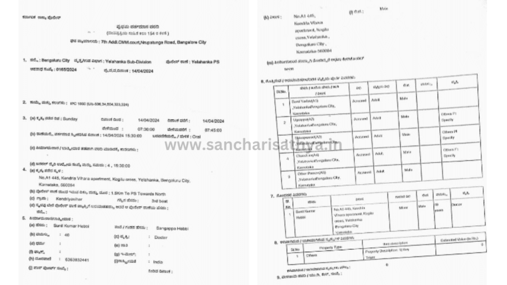 ಡಾ.ಸುನೀಲ್ ಅವರ ಪ್ರಕಾರ ಅಂದು ನಡೆದಿದ್ದೇನು..? 14-04-2024 ರಂದು ತಾನು ವಾಸಕ್ಕೆ ಇರುವ ಯಲಹಂಕದ ಕೇಂದ್ರೀಯ ವಿಹಾರ ಅಪಾರ್ಟ್ಮೆಂಟ್ ನಲ್ಲಿ ಸಂಜೆ ಸುಮಾರು 7 ರ ಹೊತ್ತಿಗೆ ಕಾರನ್ನು ಪಾರ್ಕ್ ಮಾಡುತ್ತಿದ್ದರು.ಇದ್ದಕ್ಕಿದ್ದಂತೆ ಹಿಂದಿನಿಂದ ಮೂರ್ನಾಲ್ಕು ಜನ ಪ್ರತ್ಯಕ್ಷರಾಗಿದ್ದಾರೆ.ಅವರೆಲ್ಲಾ ಅಪಾರ್ಟ್ಮೆಂಟ್ ನ ವೆಲ್ಫೇರ್ ಅಸೋಸಿಯೇಷನ್ ನಲ್ಲಿ ಪದಾಧಿಕಾರಿಗಳಾಗಿದ್ದು ಪರಿಚಿತರಾಗಿರುತ್ತಾರಂತೆ.ಎದುರಾದವರೇ ಏಕಾಏಕಿ ಅವಾಚ್ಯ ಶಬ್ದಗಳಿಂದ ಅವೆರನ್ನು ನಿಂದಿಸಲು ಶುರುಮಾಡಿದ್ದಾರೆ.ನಮ್ಮ ಅಸೋಸಿಯೇಷನ್ ನ 7 ಕೋಟಿ ಹಣದ ಖಾತೆಯನ್ನು ಕಂಪ್ಲೆಂಟ್ ಕೊಟ್ಟು ರದ್ದು ಮಾಡಿಸ್ತಿಯೇನೋ ಎಂದು ಬೈಯ್ದಾಡುತ್ತಾ ಕತ್ತಿನ ಪಟ್ಟಿ ಹಿಡಿದು ಎಳೆದಾಡಿದ್ದಾರೆ.ಅಷ್ಟರೊಳಗೆ ಇನ್ನೊಂದು ನಾಲ್ಕೈದು ಜನ ಅವರೊಂದಿಗೆ ಸೇರಿಕೊಂಡು ಬೈಯ್ಯುತ್ತಾ..ಎಳೆಯುತ್ತಾ ಹಲ್ಲೆ ಮಾಡಿದ್ದಾರೆ.ಅಪಾರ್ಟ್ಮೆಂಟ್ ನಿವಾಸಿಗಳ ಕ್ಷೇಮಾಭಿವೃದ್ಧಿ ಸಂಘದ ಪದಾಧಿಕಾರಿಗಳೆನ್ನಲಾದ ಶಿವಪ್ರಸಾದ್, ಉಗ್ರಪ್ಪ,ಸಂತೋಷ್ ಯಾದವ್,ಸುನೀಲ್ ಯಾದವ್ ,ರಮಾಕಾಂತ್ ಯಾದವ್ ಹಾಗೂ ಅವರ ಗುಂಪು ಇವರ ಕತ್ತನ್ನು ಹಿಸುಕಿದ್ದಷ್ಟೇ ಅಲ್ಲ ಅವರನ್ನು ಮಲಗಿಸಿಕೊಂಡು ಕತ್ತಿನ ಮೇಲೆ ಕಾಲಿಟ್ಟು ತುಳಿದಿದ್ದಾರಂತೆ.ಅವರ ಗುಪ್ತಾಂಗಗಳ ಮೇಲೂ ಪ್ರಹಾರ ನಡೆಸಿದ್ದಾರಂತೆ.