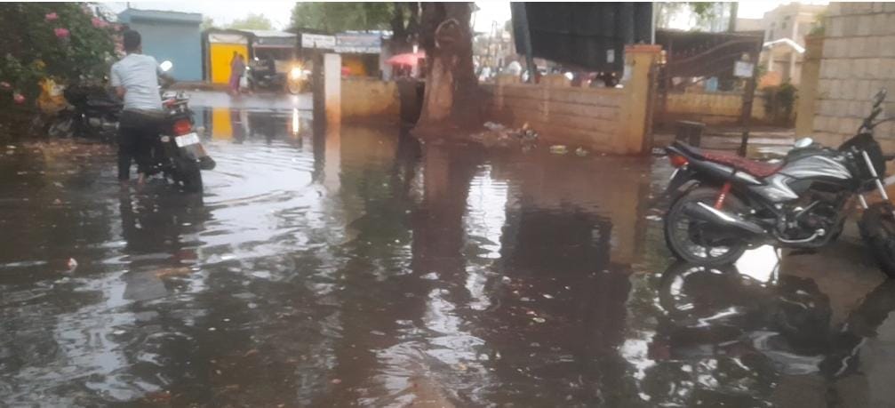 ಬೆಳಗಾವಿ ಜಿಲ್ಲೆ ರಾಮದುರ್ಗ ಪಟ್ಟಣದ ಮಿನಿ ವಿಧಾನಸೌಧ ಕಚೇರಿ ಆವರಣದಲ್ಲಿ ಮಳೆ ಆದರೆ ಸಾಕು ಚರಂಡಿ ನೀರು ನಿಲ್ಲುತ್ತದೆ