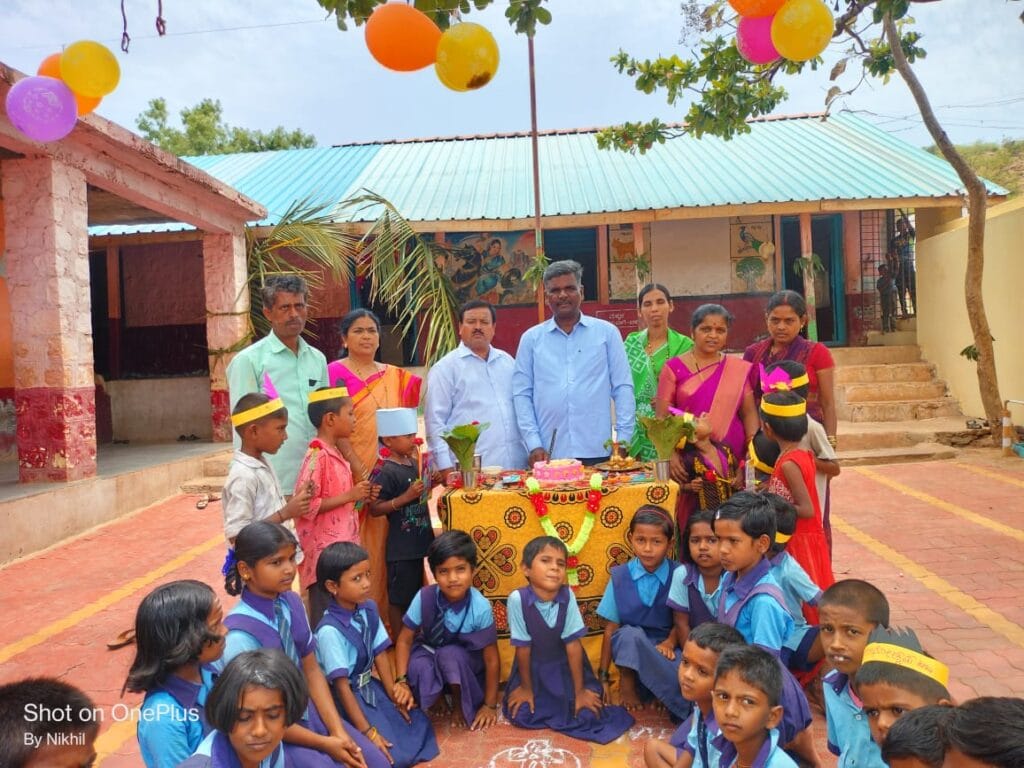 ಶಾಲಾ ಮಕ್ಕಳಿಗೆ ಕೇಕ ಕತ್ತರಿಸಿ ಸಿಹಿ ವಿತರಿಸಲಾಯಿತು. ಹೊಸದಾಗಿ ದಾಖಲಾಗುವ ಮಕ್ಕಳಿಗೆ ಪೂಜೆ ಸಲ್ಲಿಸಿ ಬರಮಾಡಿಕೊಳ್ಳಲಾಯಿತು. ಉಡುಗೊರೆಯಾಗಿ ಅಂಕಲಿಪಿ ವಿತರಿಸಲಾಯಿತು. ಮಕ್ಕಳಿಗೆ ಸಿಹಿ ಊಟ ನೀಡಲಾಯಿತು.