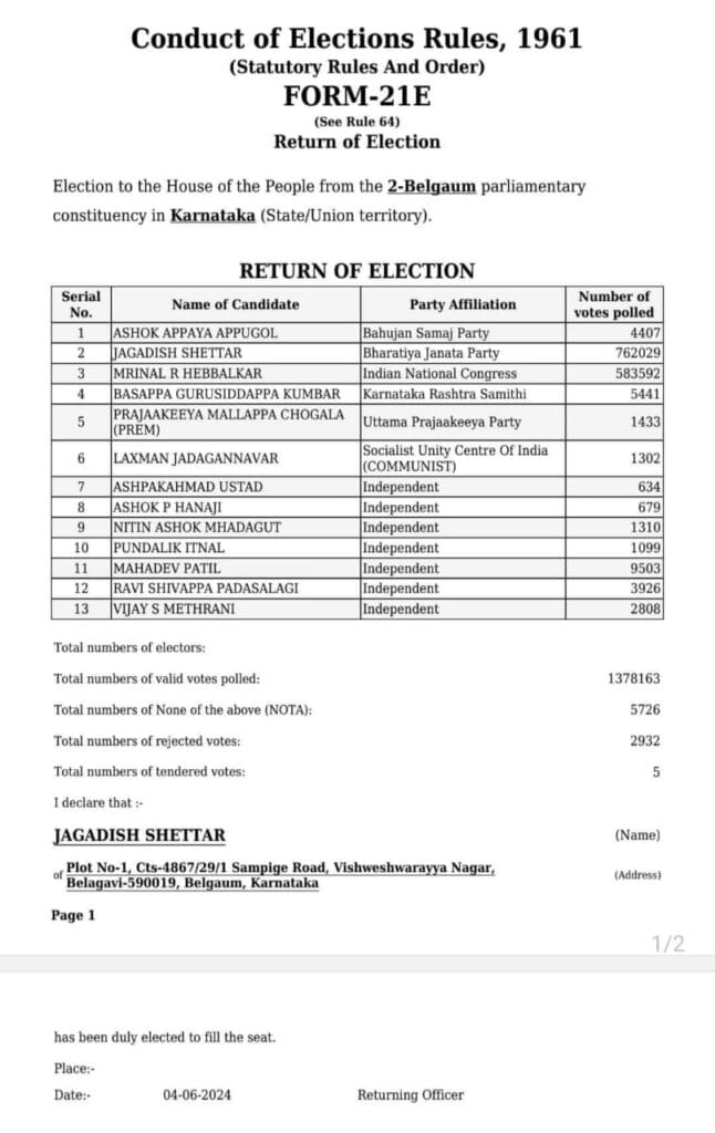ರಾಜ್ಯಲೋಕಸಭಾ ಚುನಾವಣೆ-2024 ಬೆಳಗಾವಿ ಲೋಕಸಭಾ ಕ್ಷೇತ್ರದ ಚುನಾವಣೆಯಲ್ಲಿ ಅಭ್ಯರ್ಥಿಗಳು ಪಡೆದಿರುವ ಮತಗಳ ವಿವರ. Prashanth Angadi4 June 20244 June 202401 minsAbout The Author Prashanth Angadi WhatsApp Group Join Now See author's posts Post navigationPrevious: ಜಗದೀಶ್ ಶೆಟ್ಟರ್ ಅವರಿಗೆ ಚುನಾವಣಾಧಿಕಾರಿ ನಿತೇಶ್ ಪಾಟೀಲ ಪ್ರಮಾಣಪತ್ರ ವಿತರಿಸಿದರು.Next: ಲೋಕಸಭಾ ಚುನಾವಣೆ-2024 ಚಿಕ್ಕೋಡಿ ಲೋಕಸಭಾ ಕ್ಷೇತ್ರದ ಚುನಾವಣೆಯಲ್ಲಿ ಅಭ್ಯರ್ಥಿಗಳು ಪಡೆದಿರುವ ಮತಗಳ ವಿವರ.