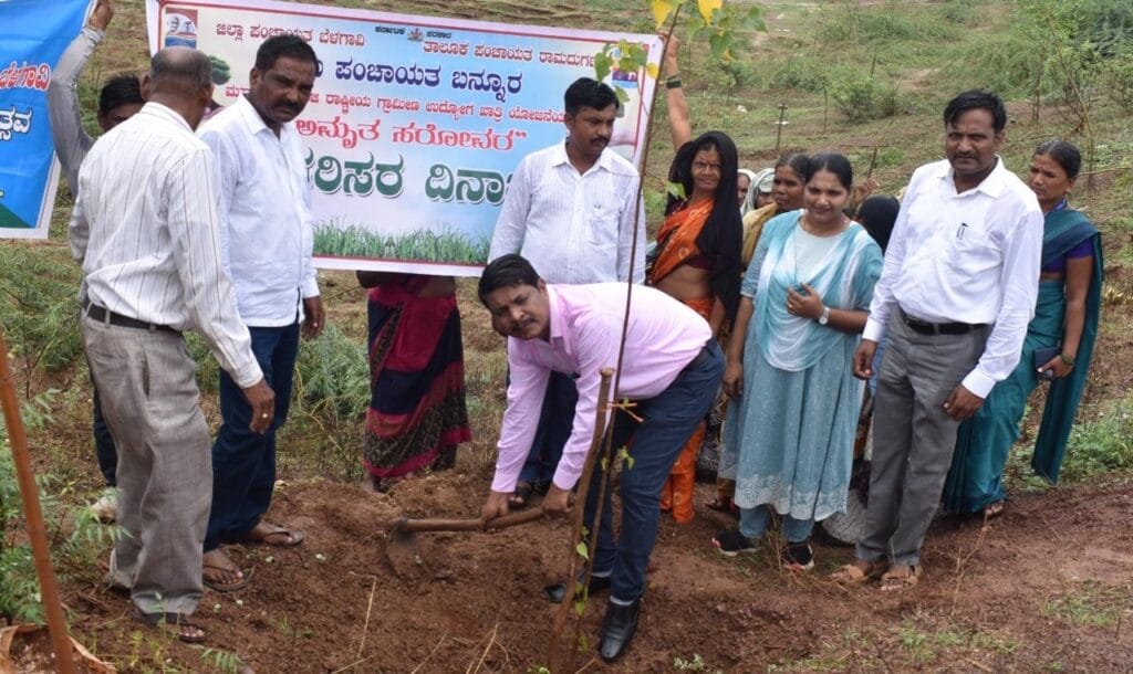 ರಾಮದುರ್ಗ ತಾಲೂಕಿನ ಬನ್ನೂರ ಗ್ರಾಮ ಪಂಚಾಯತಿ ವ್ಯಾಪ್ತಿಯಡಿ ಬರುವ ಅಮೃತ ಸರೋವರ ಕೆರೆ ದಂಡೆ ಮೇಲೆ ಸಸಿ ನೆಡೆವುದರ ಮೂಲಕ ತಾಲೂಕು ಪಂಚಾಯತ್ ಪಂ ಕಾರ್ಯನಿರ್ವಾಹಕ ಅಧಿಕಾರಿ ಬಸವರಾಜ ಐನಾಪೂರ ವಿಶ್ವ ಪರಿಸರ ದಿನಾಚರಣೆ ಕಾರ್ಯಕ್ರಮಕ್ಕೆ ಚಾಲನೆ ನೀಡಿದರು.