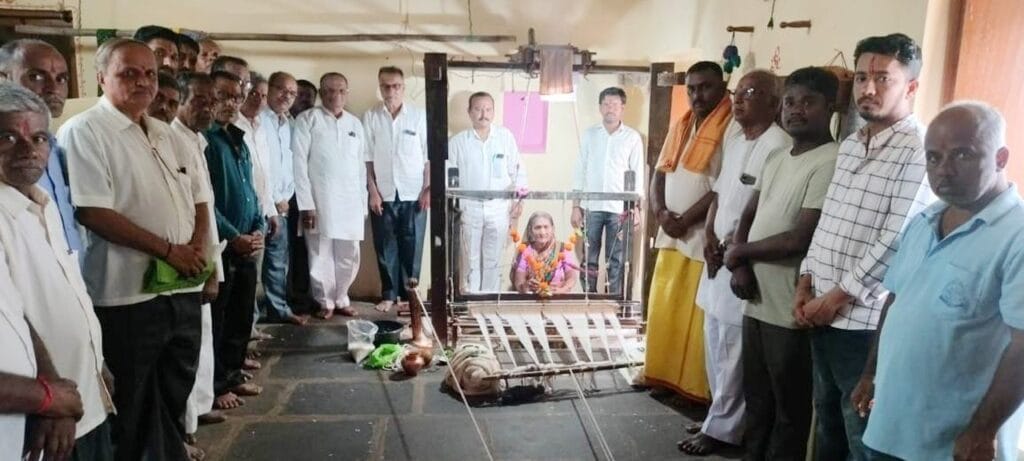 ಬೆಳಗಾವಿ ಜಿಲ್ಲೆ ರಾಮದುರ್ಗ ಪಟ್ಟಣದ ಕಾಶಿಪೇಟೆಯ ತಾರಮ್ಮ ನಾಗರಾಳ ಮತ್ತು ಮುಗಳಿ ಅವರ ನಿವಾಸದಲ್ಲಿ ರಾಷ್ಟ್ರೀಯ ಕೈಮಗ್ಗ ದಿನಾಚರಣೆಯ ಕಾರ್ಯಕ್ರಮದಲ್ಲಿ ರಾಜ್ಯ ದೇವಾಂಗ ಸಂಘದ ಉಪಾಧ್ಯಕ್ಷ ಶಂಕ್ರಣ್ಣ ಮುರುಡಿ ಪಾಲ್ಗೊಂಡು ಮಾತನಾಡಿದರು ಖಾದಿ ಉತ್ಪನ್ನ ಬಟ್ಟೆಗಳಿಗೆ ಸರಕಾರ ಪೂರಕ ವಾತಾವರಣ ಕಲ್ಪಿಸುವ ಮೂಲಕ ನಸಿಸಿ ಹೋಗುತ್ತಿರುವ ಕೈಮಗ್ಗ ನೇಕಾರಿಕೆಗೆ ಉತ್ತೇಜನ ನೀಡಬೇಕು ಕಾಲ ಬದಲಾದಂತೆ ನೇಕಾರಿಕೆಯು ಬದಲಾವಣೆ ಹಾದಿ ಹಿಡಿದಿದೆ. ಈ ಹಿನ್ನೆಲೆಯಲ್ಲಿ ಸರಕಾರ ವಿವಿಧ ಇಲಾಖೆ ಸಿಬ್ಬಂದಿಗೆ ಕೈಮಗ್ಗ ಉತ್ಪನ್ನಗಳ ವಸ್ತ್ರಗಳನ್ನು ಕಡ್ಡಾಯವಾಗಿ ಬಳಸುವಂತೆ ಅದೇಶ ನೀಡಿದಲ್ಲಿ ನೇಕಾರಿಕೆ ಉಳಿಯುತ್ತದೆ ಎಂದು ಹೇಳಿದರು.