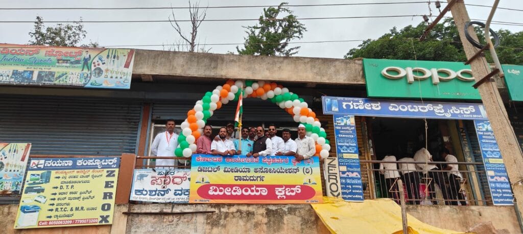 ಬೆಳಗಾವಿ ಜಿಲ್ಲೆಯ ರಾಮದುರ್ಗ ಪಟ್ಟಣದ ವಿದ್ಯಾ ಚೇತನ ಶಾಲೆ ಮುಂದೆ ಇರುವ ಪುರಸಭೆ ಕಾಂಪ್ಲೆಕ್ಸ್ ದಲ್ಲಿ ಗುರುವಾರ ಕಾರ್ಯನಿರತ ಪತ್ರಕರ್ತರ ಧ್ವನಿ ಸಂಘಟನೆಯ ರಾಮದುರ್ಗ ಮೀಡಿಯಾ ಕ್ಲಬ್ ಕಾರ್ಯಾಲಯವನ್ನು ಉದ್ಘಾಟನೆ ಮಾಡುವ ಮೂಲಕ 78ನೇ ಸ್ವಾತಂತ್ರ್ಯೋತ್ಸವ ದಿನಾಚರಣೆಯ ಧ್ವಜಾರೋಹಣವನ್ನು ಕಾ.ನಿ.ಪ ದ್ವನಿ ಸಂಘಟನೆಯ ರಾಮದುರ್ಗ ತಾಲೂಕ ಅಧ್ಯಕ್ಷರಾದ ರಮೇಶ ರಾಯಭಾಗ ನೆರವೇರಿಸಿದರು.
