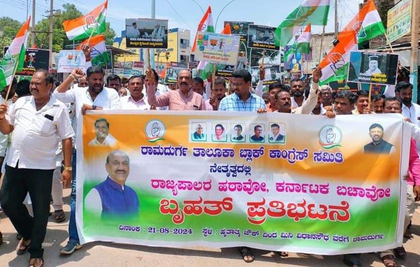 ಶಾಸಕರ ಕಚೇರಿಯಿಂದ ಹೊರಟ ಪ್ರತಿಭಟನಾಕಾರರು, ರಾಮದುರ್ಗ ಪಟ್ಟಣದ ಪ್ರಮುಖ ಬೀದಿಗಳಲ್ಲಿ ಸಂಚರಿಸುತ್ತಾ ರಾಜ್ಯಪಾಲರ ಕ್ರಮವನ್ನು ಖಂಡಿಸಿ ಘೋಷಣೆಗಳನ್ನು ಕೂಗುತ್ತಾ ಮಿನಿ ವಿಧಾನಸೌಧಕ್ಕೆ ತೆರಳಿ ಸಮಾವೇಶಗೊಂರು.