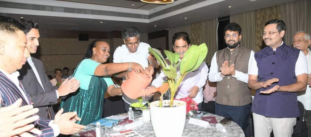 ಬೆಳಗಾವಿ ನಗರದ ಖಾಸಗಿ ಹೋಟೆಲ್ ನಲ್ಲಿ ಭಾನುವಾರ ಜರುಗಿದ ಸ್ಥಳೀಯ ಉದ್ಯಮಿಗಳು ಹಾಗೂ ಬಂಡವಾಳ ಹೂಡಿಕೆದಾರರ ಸಭೆಯನ್ನು ಪೂರ್ವ ಆಫ್ರಿಕಾದ ರೊವಾಂಡಾ ದೇಶದ ಹೈಕಮೀಶನರ್ ಶ್ರೀಮತಿ ಜಾಕ್ವೆಲಿನ್ ಮುಕಂಜಿರಾ ಅವರು ಸಸಿಗೆ ನೀರು ಉಣಿಸುವ ಮೂಲಕ ಚಾಲನೆ ನೀಡಿ ಮಾತನಾಡಿದರು.