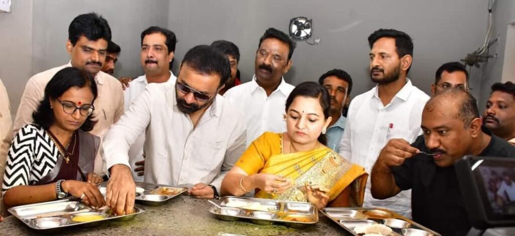 ಕ್ಯಾಂಟೀನ್ದಲ್ಲಿ ಸಚಿವ ಸಂತೋಷ ಲಾಡ್ ಹಾಗೂ ಡಿಸಿ ದಿವ್ಯ ಪ್ರಭು ಅವರು ಐದು ರೂ. ಹಣ ಕೊಟ್ಟು ಟೋಕನ್ ಖರೀದಿಸಿದರು. ನಂತರ ಸಚಿವರು ಜೋಳದ ರೊಟ್ಟಿ ಊಟ ಸವಿದರು. ಡಿಸಿ ದಿವ್ಯ ಪ್ರಭು ಅವರು ಇಡ್ಲಿ, ಅವಲಕ್ಕಿ ಮತ್ತು ಶ್ಯಾವಿಗೆ ಸಿಹಿ ಸವಿದರು.