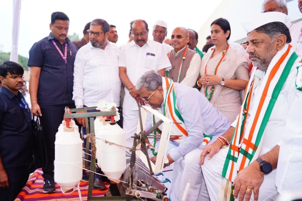 ರಾಷ್ಟ್ರಪಿತ ಮಹಾತ್ಮಗಾಂಧೀಜಿ ಅವರ ಅಧ್ಯಕ್ಷತೆಯಲ್ಲಿ ಬೆಳಗಾವಿಯಲ್ಲಿ 1924ರಲ್ಲಿ ನಡೆದ ಕಾಂಗ್ರೆಸ್ ಅಧಿವೇಶನನದ ಶತಮಾನೋತ್ಸವ ಆಚರಣೆ ಹಿನ್ನೆಲೆಯಲ್ಲಿ ಬೆಳಗಾವಿ ನಗರದಲ್ಲಿ ವಿಶೇಷವಾಗಿ ರೂಪಿಸಿರುವ ಸರಸ್ ಮೇಳ ಮತ್ತು ಖಾದಿ ಉತ್ಸವ,ವಸ್ತುಪ್ರದರ್ಶನ ಮತ್ತು ಮಾರಾಟ ಮೇಳಕ್ಕೆ ಮುಖ್ಯಮಂತ್ರಿ ಸಿದ್ದರಾಮಯ್ಯ ಹಾಗೂ ಉಪಮುಖ್ಯಮಂತ್ರಿಗಳಾದ ಡಿ.ಕೆ.ಶಿವಕುಮಾರ್ ಅವರು ನಗರದ ಸರ್ದಾರ್ ಹೈಸ್ಕೂಲ್ ಮೈದಾನದಲ್ಲಿ ಚಾಲನೆ ನೀಡಿದರು.
