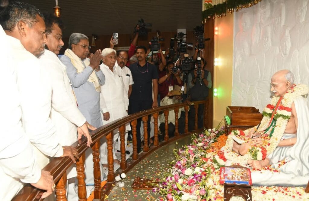 ಜರುಗಿದ ಕಾಂಗ್ರೆಸ್ ಅಧಿವೇಶನದ ಶತಮಾನೊತ್ಸವದ ಅಂಗವಾಗಿ ನಗರದ ಟಿಳಕವಾಡಿಯಲ್ಲಿನ ವೀರಸೌಧದಲ್ಲಿ ಮಹಾತ್ಮಾ ಗಾಂಧೀಜಿಯವರ ನೂತನ ಪ್ರತಿಮೆಯನ್ನು ಮುಖ್ಯಮಂತ್ರಿಗಳಾದ ಸಿದ್ಧರಾಮಯ್ಯ ಅವರು ಅನಾವರಣಗೊಳಿಸಿ ವಿವಿಧ ಅಭಿವೃದ್ಧಿ ಕಾಮಗಾರಿಗಳಿಗೆ ಚಾಲನೆ ನೀಡಿದರು.