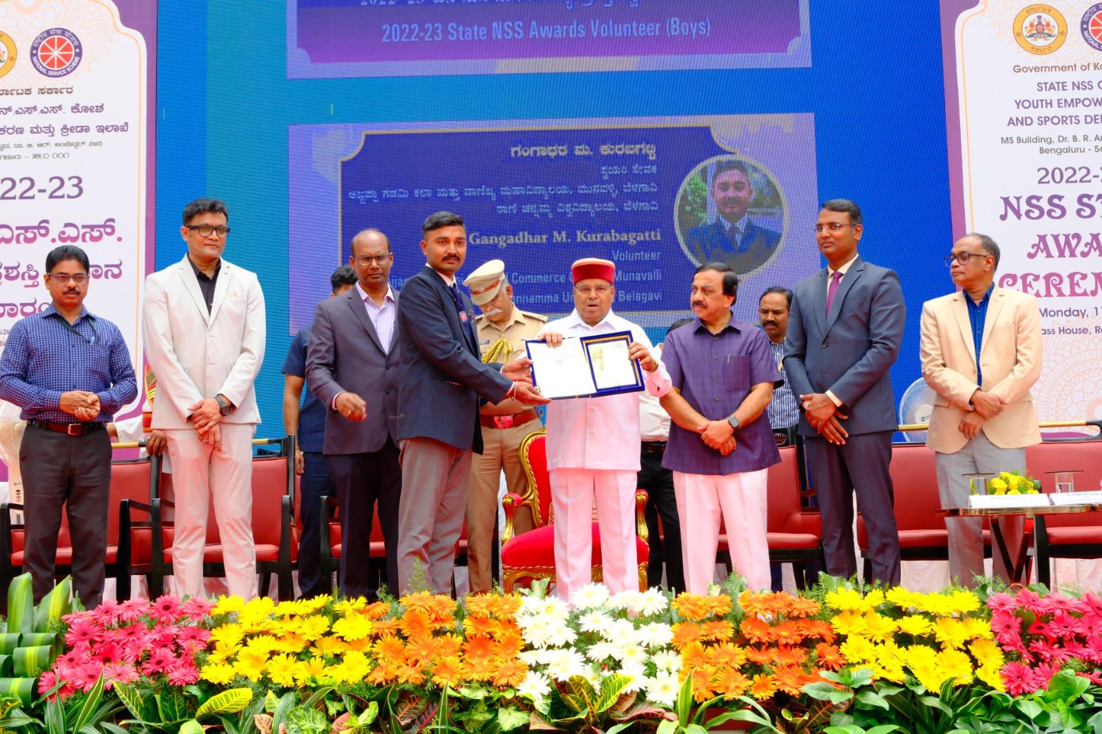 ಬೆಂಗಳೂರು ರಾಜ ಭವನದಲ್ಲಿ ನಡೆದ ಕರ್ನಾಟಕ ಸರ್ಕಾರ ಯುವ ಸಬಲೀಕರಣ ಮತ್ತು ಕ್ರೀಡಾ ಇಲಾಖೆ ಹಾಗೂ ರಾಜ್ಯ ರಾಷ್ಟ್ರೀಯ ಸೇವಾ ಯೋಜನೆ ಘಟಕ ಬೆಂಗಳೂರು ಇವರ ಸಂಯುಕ್ತ ಆಶ್ರಯದಲ್ಲಿ ಸನ್ 2022-23 ನೇ ಸಾಲಿನ ರಾಜ್ಯ ಎನ್.ಎಸ್.ಎಸ್.ಸ್ವಯಂಸೇವಕ ಪ್ರಶಸ್ತಿಯನ್ನು ಇತಿಹಾಸದಲ್ಲಿ ಪ್ರಪ್ರಥಮ ಬಾರಿಗೆ ಮುನವಳ್ಳಿ ಜಿ.ಎಸ್.ಪಿ. ಸಂಘದ ಅಜ್ಜಪ್ಪ ಗಡಮಿ ಕಲಾ ಹಾಗೂ ವಾಣಿಜ್ಯ ಮಹಾವಿದ್ಯಾಲಯದ ಗಂಗಾಧರ ಮಲ್ಲಿಕಾರ್ಜುನ ಕುರಬಗಟ್ಟಿ ಇವರಿಗೆ ಮಾರ್ಚ್ 17ರಂದು ರಾಜ ಭವನದಲ್ಲಿ ರಾಜ್ಯಪಾಲ ತಾವರ್ ಚಂದ್ ಗೆಹಲೋಟ್ ಅವರು ಪ್ರಶಸ್ತಿಯನ್ನು ನೀಡಿ ಗೌರವಿಸಿದರು.