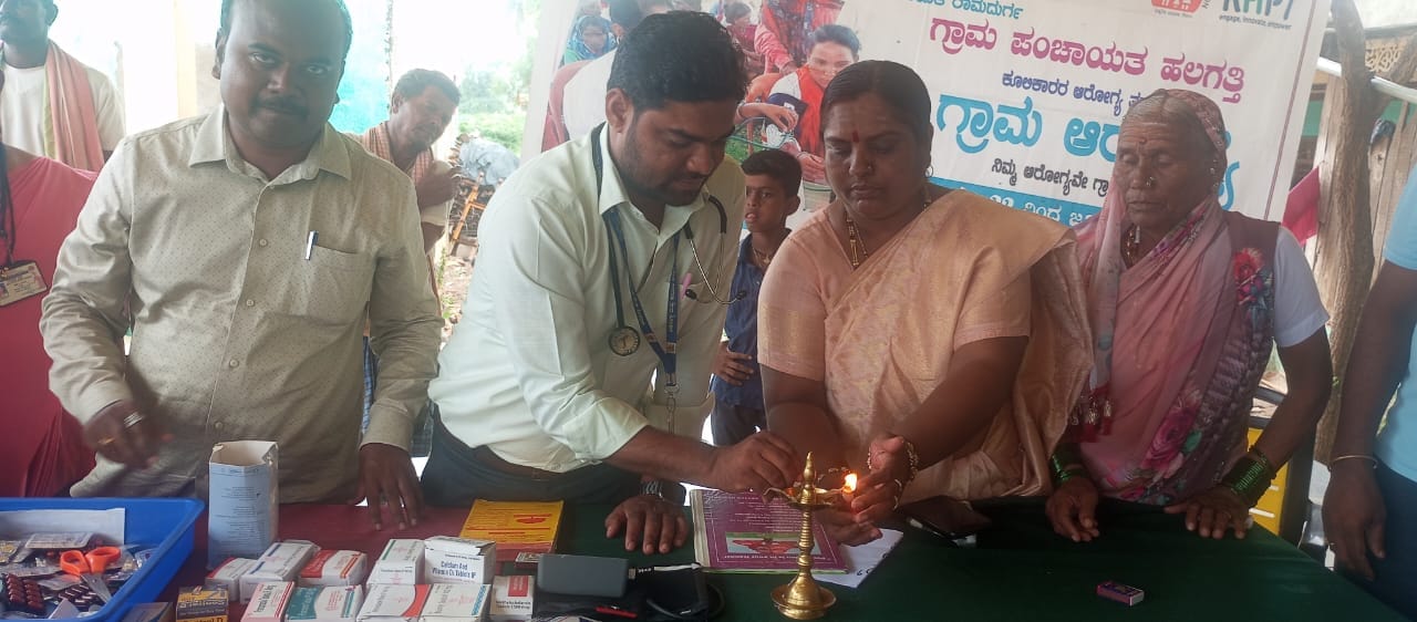 ಬೆಳಗಾವಿ ಜಿಲ್ಲೆ ರಾಮದುರ್ಗ ತಾಲೂಕಿನ ಹಲಗತ್ತಿ ಗ್ರಾಮದ ಬೀರಲಿಂಗೇಶ್ವರ ದೇವಸ್ಥಾನದಲ್ಲಿ ಮಹಾತ್ಮಗಾಂಧಿ ರಾಷ್ಟ್ರೀಯ ಗ್ರಾಮೀಣ ಉದ್ಯೋಗ ಖಾತ್ರಿ ಯೋಜನೆಯಡಿ ನೋಂದಣಿಗೊಂಡ ಕೂಲಿ ಕಾರ್ಮಿಕರಿಗೆ ಉಚಿತ ಆರೋಗ್ಯ ತಪಾಸಣೆ ಕಾರ್ಯಕ್ರಮವನ್ನು ಗ್ರಾಮ ಪಂಚಾಯತ್ ಅಧ್ಯಕ್ಷರು ಲಲಿತಾ. ಲ. ಹೂಗಾರ, ಜ್ಯೋತಿ ಬೆಳಗಿಸುವುದರ ಮೂಲಕ ಚಾಲನೆ ನೀಡಿದರು.