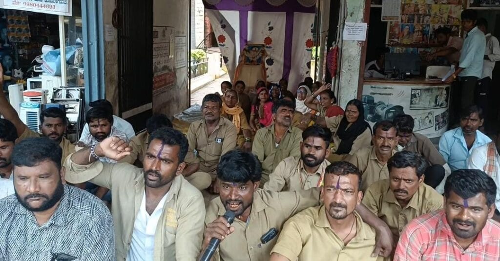 ದಿನಗೂಲಿ ಕ್ಷೇಮಾಭಿವೃಧಿ ಸಮಾನ ಕೆಲಸಕ್ಕೆ ಸಮಾನ ವೇತನ ನೌಕರರನ್ನು ಖಾಯಂ ಮಾಡುವುದು.