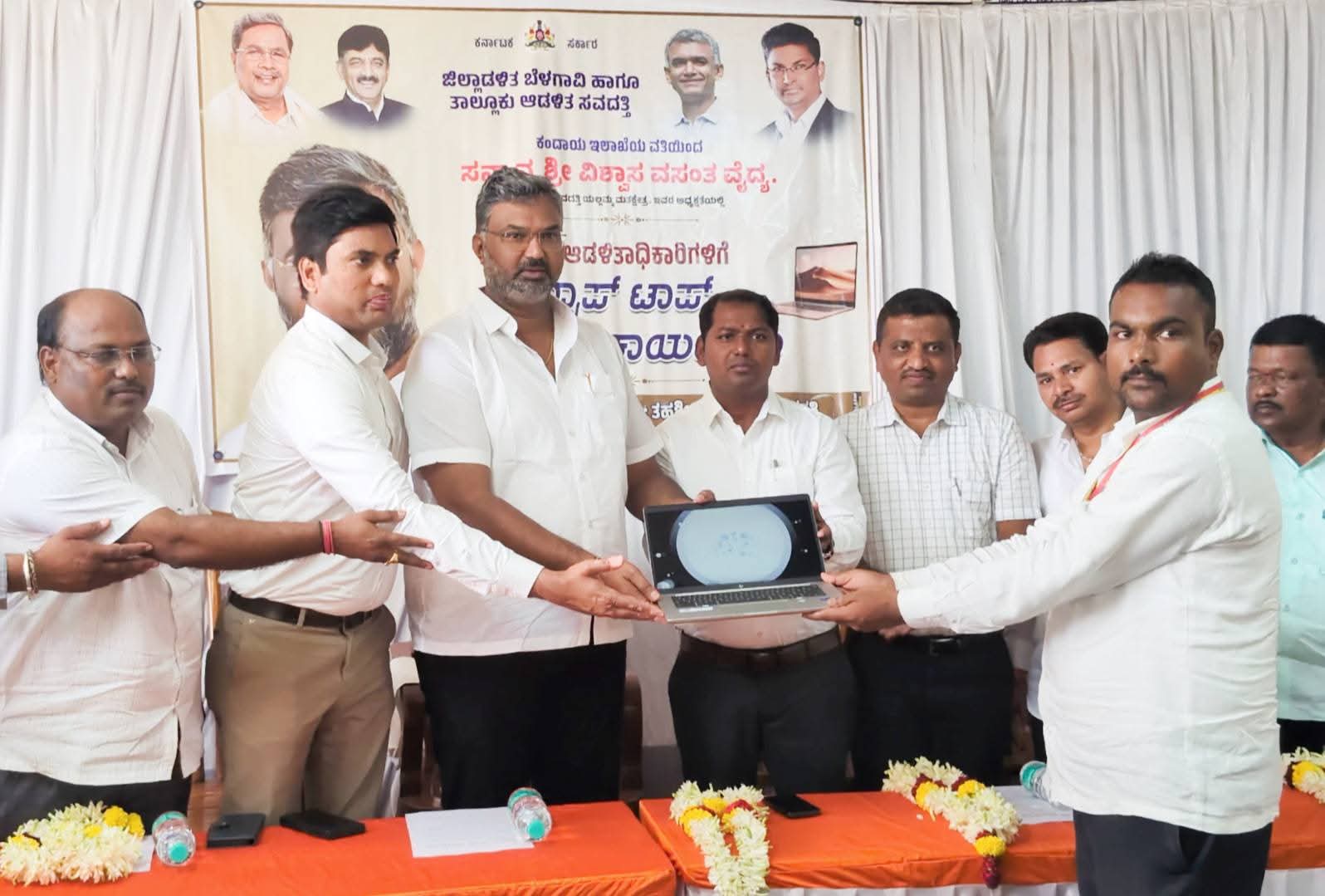 ಬೆಳಗಾವಿ ಜಿಲ್ಲೆ ಸವದತ್ತಿ ಪಟ್ಟಣದ ತಹಶೀಲ್ದಾರ ಕಾರ್ಯಾಲಯದಲ್ಲಿ ಹಾಗೂ ತಾಲೂಕು ಆಡಳಿತ ಸವದತ್ತಿ, ವಾರ್ಷಿಕ ಇಲಾಖೆ ವತಿಯಿಂದ ಸವದತ್ತಿ ತಾಲೂಕಿನ ಒಟ್ಟು 13 ಗ್ರಾಮ ಆಡಳಿತ ಅಧಿಕಾರಿಗಳ ಶಾಸಕ ವಿಶ್ವಾಸ ವಸಂತ ವೈದ್ಯ ಅವರು “ಲ್ಯಾಪ್ ಟಾಪ್” ವಿತರಿಸಿದ ರಾಜ್ಯ ಸರ್ಕಾರದ ಎಲ್ಲಾ ತಂತ್ರಾಂಶಗಳನ್ನು ಲ್ಯಾಪ್ ಟಾಪ್ ನಲ್ಲಿ ಅಳವಡಿಸಿಕೊಂಡು ಸಾರ್ವಜನಿಕರಿಗೆ ನೇರವಾಗಿ ಗ್ರಾಮ ಮಟ್ಟದಲ್ಲಿ ತ್ವರಿತವಾಗಿ ಸೇವೆ ನೀಡುವಂತೆ ಕರೆ ನೀಡಿದರು.