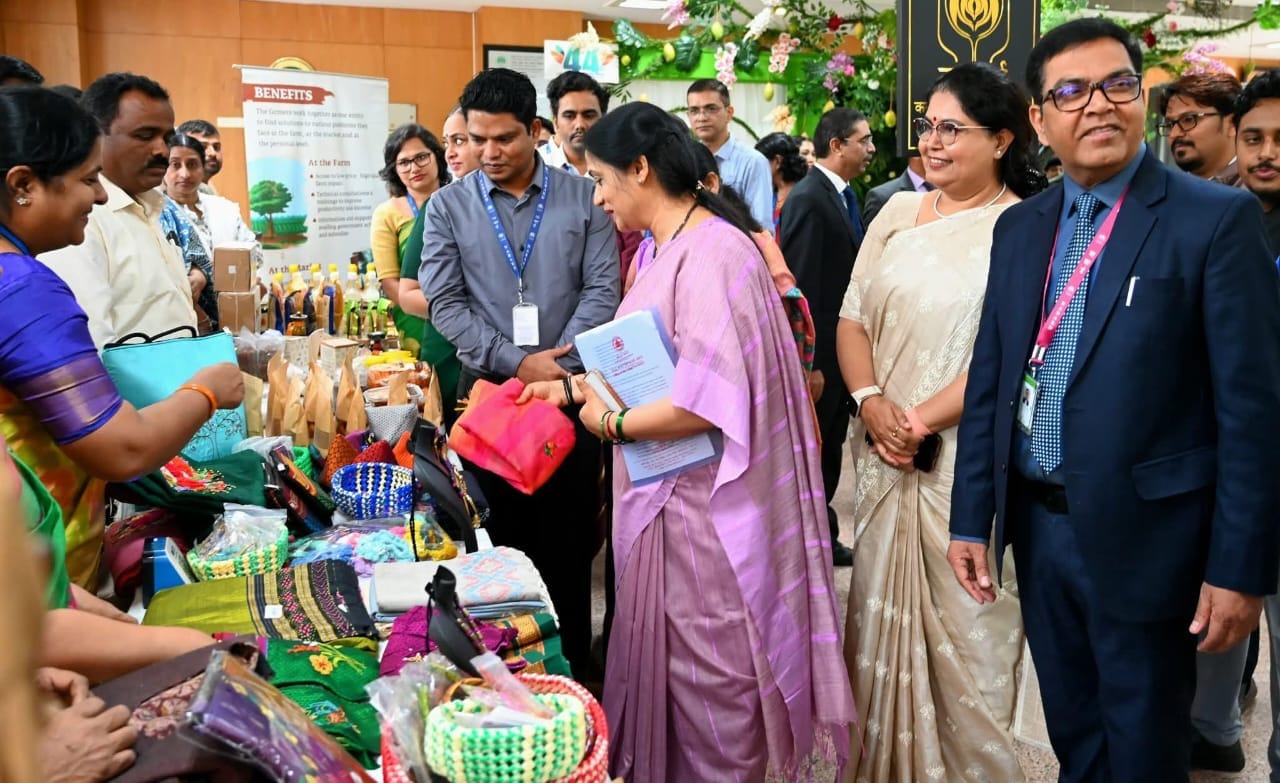 ಧಾರವಾಡ ಜುಲೈ 15 ರಂದು ನಬಾರ್ಡ ಕ್ಷೇತ್ರಿಯ ಕಾರ್ಯಲಯ ಬೆಂಗಳೂರುನಲ್ಲಿ ಆಯೋಜಿಸಿದ್ದ ನಬಾರ್ಡ 44 ಸಂಸ್ಥೆ ದಿನಾಚರಣೆ ಅಂಗವಾಗಿ ಸ್ವಾವಲಂಬಿ ಒಕ್ಕೂಟಗಳು ಆಯೋಜಿಸಿದ್ದ ಕೈ ಕುಸುರಿ ಹಾಗೂ ಕೈಮಗ್ಗ ವಸ್ತುಗಳ ಪ್ರದರ್ಶನದಲ್ಲಿ ಭಾಗವಹಿಸಿದ್ದ ಧಾರವಾಡದ ಸ್ವಾವಲಂಬಿ ಸಖಿ ಒಕ್ಕೂಟ ತಯಾರಿಸಿದ ಅದ್ಭುತವಾದ ಆರಿ ಕಸೂತಿ ಉತ್ಪನ್ನಗಳಿಗೆ ಕರ್ನಾಟಕ ಸರ್ಕಾರದ ಮುಖ್ಯ ಕಾರ್ಯದರ್ಶಿ ಡಾ. ಶಾಲಿನಿ ರಜಿನೀಶ ಅವರು ಮೆಚ್ಚುಗೆ ವ್ಯಕ್ತಪಡಿಸಿದರು.