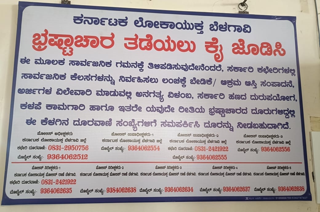 ಬೆಳಗಾವಿ ಜಿಲ್ಲೆ ರಾಮದುರ್ಗ ತಾಲೂಕಿನ ವಿವಿಧ ಕಚೇರಿಗಳಲ್ಲಿ ಎದ್ದು ಕಾಣುತ್ತಿರುವ ಲೋಕಾಯುಕ್ತ ನಾಮಫಲಕದ ಬೋರ್ಡುಗಳು