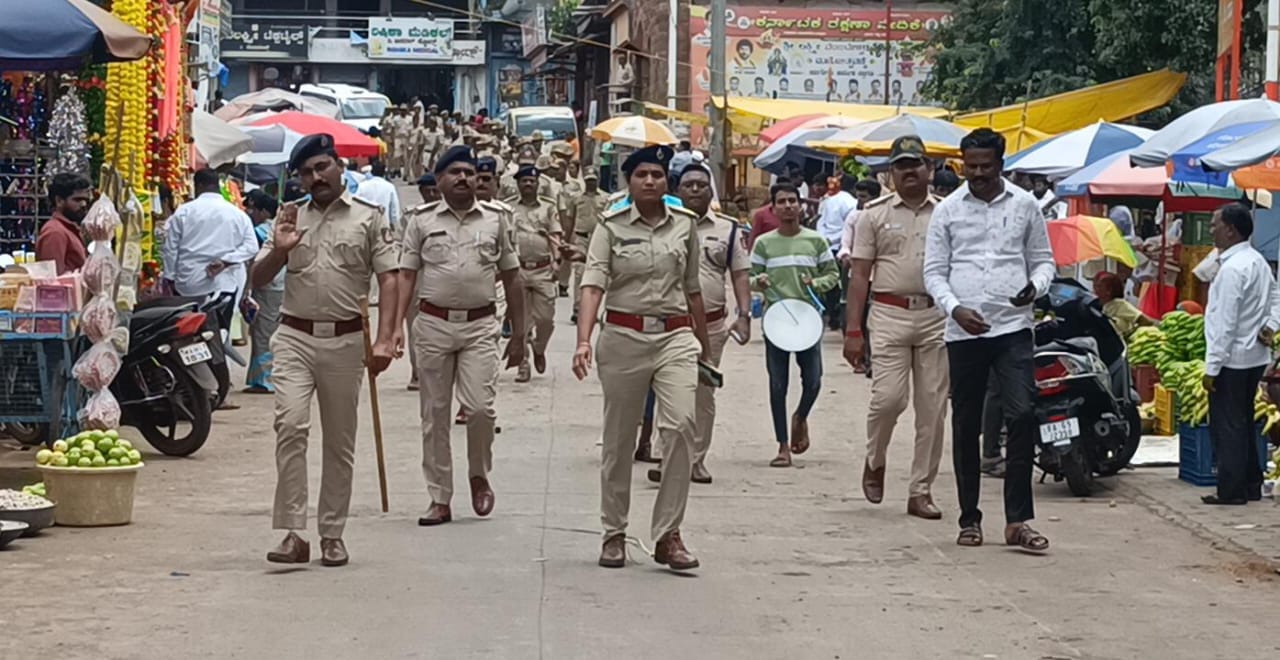 ಗೌರಿ ಗಣೇಶ ಮತ್ತು ಈದ್ ಮಿಲಾದ್ ಹಬ್ಬದ ನಿಮಿತ್ತ ರಾಮದುರ್ಗ ಪಟ್ಟಣದಲ್ಲಿ ಸೂಕ್ತ ಬಂದೋಬಸ್ತ್ ಕೈಗೊಳ್ಳುವ ನಿಟ್ಟಿನಲ್ಲಿ ಪಟ್ಟಣದ ಡಿ.ವಾಯ್.ಎಸ್. ಪಿ. ಚಿದಂಬರ ಮಡಿವಾಳರ ನೇತೃತ್ವದಲ್ಲಿ ಪೊಲೀಸರು ಮಂಗಳವಾರ ಪಥಸಂಚಲನ ನಡೆಸಿದರು.