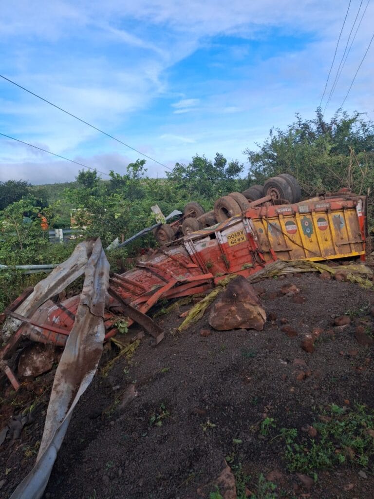 ಬೆಳಗಾವಿ ಜಿಲ್ಲೆ ರಾಮದುರ್ಗ ತಾಲೂಕಿನ ಮುಳ್ಳೂರು ಗುಡ್ಡದ ಶಿವನ ಮೂರ್ತಿ ಎದುರುಗಡೆ ಚಾಲಕನ ನಿಯಂತ್ರಣ ತಪ್ಪಿ ಮೆಗ್ನೀಸ್ ಅದಿರಿನ ಟ್ರಕ್ KA 29 A 6100 ಪಲ್ಟಿಯಾಗಿದ್ದು ಚಾಲಕ ಸ್ಥಳದಲ್ಲಿ ಮೃತಪಟ್ಟಿರುತ್ತಾನೆ.