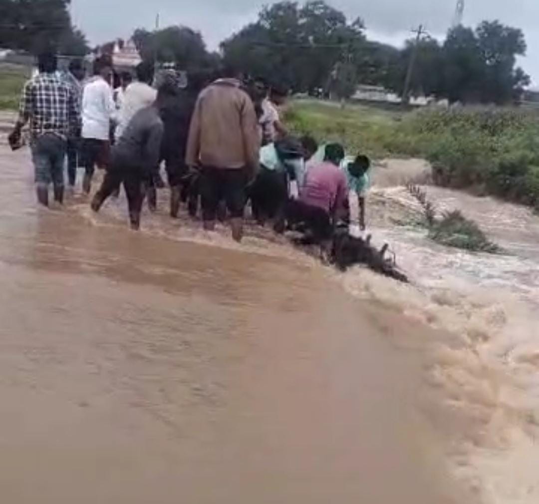 ಗೋಡಚಿಯಿಂದ ಚಂದರಗಿ ಹೋಗುವ ರಸ್ತೆ ಮಧ್ಯದಲ್ಲಿರುವ ರಾಮಯ್ಯ ಅಜ್ಜನವರ ಮಠದ ಮುಂದೆ ಇರುವ ಹಳ್ಳದ ರಸ್ತೆ ನೀರು ತುಂಬಿ ಹರಿಯುತ್ತಿರುವುದು ಆ ರಸ್ತೆಯಲ್ಲಿ ದ್ವಿಚಕ್ರ ವಾಹನ ಸವಾರರು ಸಿಲುಕಿಕೊಂಡಿದ್ದು ಗೊಡಚಿ ಗ್ರಾಮದ ಗ್ರಾಮಸ್ಥರು ಹಗ್ಗದ ಸಹಾಯದಿಂದ ವ್ಯಕ್ತಿ ಮತ್ತು ಟೂ ವೀಲರ್ ಸೈಕಲ್ ಮೋಟಾರ್ ವಾಹನವನ್ನು ಕಡೆಗೆ ಜಗ್ಗಿದ್ದಾರೆ