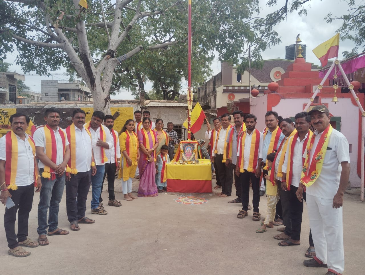 ಬೆಳಗಾವಿ ಜಿಲ್ಲೆ ರಾಮದುರ್ಗ ಪಟ್ಟಣದ ರಾಧಾಪೂರ ಪೇಟೆಯಲ್ಲಿ ಶ್ರೀ ದೇವರ ದಾಸಿಮಯ್ಯ ನವರ ವೃತ್ತದ ಹತ್ತಿರ ಎಚ್.ಶಿವರಾಮೇಗೌಡರ ನೇತೃತ್ವದ ಕರ್ನಾಟಕ ರಕ್ಷಣಾ ವೇದಿಕೆಯ ವತಿಯಿಂದ 70ನೇ ಕನ್ನಡ ರಾಜ್ಯೋತ್ಸವದ ಧ್ವಜಾರೋಹಣವನ್ನು ಕರ್ನಾಟಕ ರಕ್ಷಣಾ ವೇದಿಕೆಯ ಅಧ್ಯಕ್ಷರಾದ ವಿನಯ ಚಂದರಗಿ ನೆರವೇರಿಸಿ,