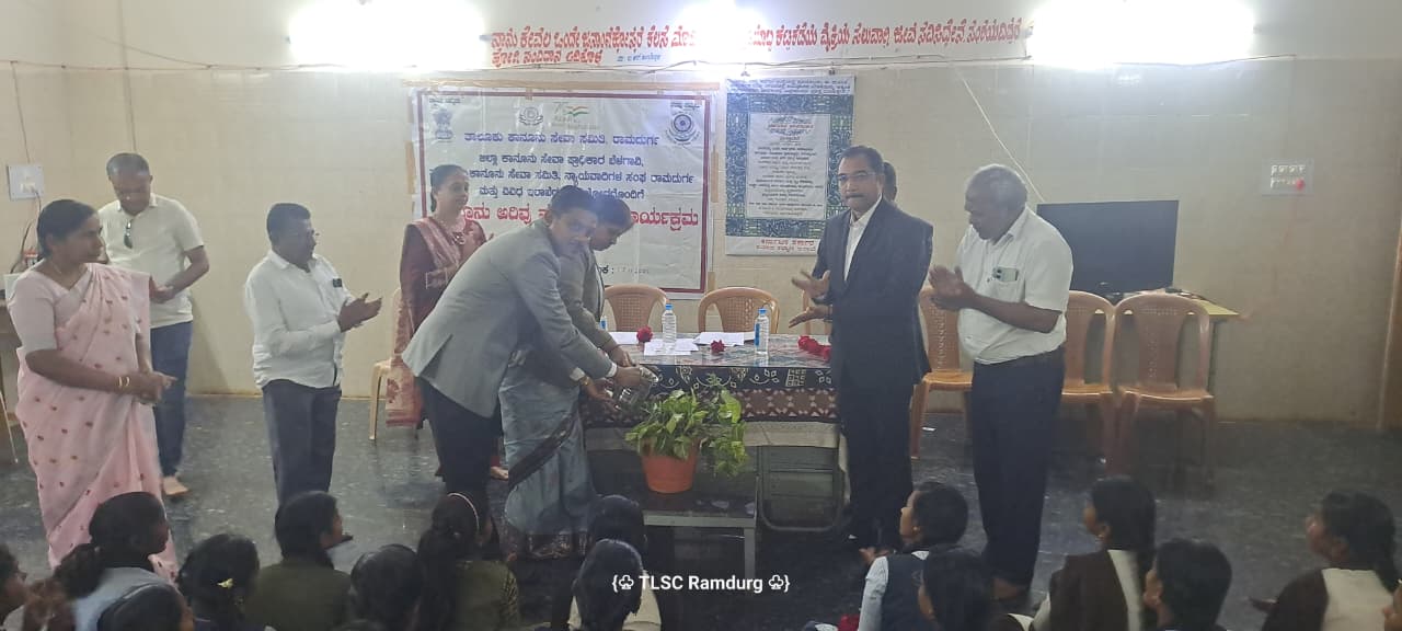 ಬೆಳಗಾವಿ ಜಿಲ್ಲೆ ರಾಮದುರ್ಗ ಪಟ್ಟಣದ ಮೆಟ್ರಿಕ್ ನಂತರದ ಬಾಲಕಿಯರ ವಸತಿ ನಿಲಯ ಜಯನಗರದಲ್ಲಿ ಕರ್ನಾಟಕ ರಾಜ್ಯ ಕಾನೂನು ಸೇವಾ ಪ್ರಾಧಿಕಾರ, ಜಿಲ್ಲಾ ಕಾನೂನು ಸೇವಾ ಪ್ರಾಧಿಕಾರ, ಬೆಳಗಾವಿ ಮತ್ತು ತಾಲೂಕು ಕಾನೂನು ಸೇವಾ ಸಮಿತಿ, ರಾಮದುರ್ಗ ಹಾಗೂ ನ್ಯಾಯವಾದಿಗಳ ಸಂಘ, ರಾಮದುರ್ಗ ಹಾಗೂ ಸಮಾಜ ಕಲ್ಯಾಣ ಇಲಾಖೆ ರಾಮದುರ್ಗ ಹಾಗೂ ವಿವಿಧ ಇಲಾಖೆಗಳ ಸಂಯುಕ್ತ ಆಶ್ರಯದಲ್ಲಿ ಕಾನೂನು ಅರಿವು ಕಾರ್ಯಕ್ರಮವನ್ನು
