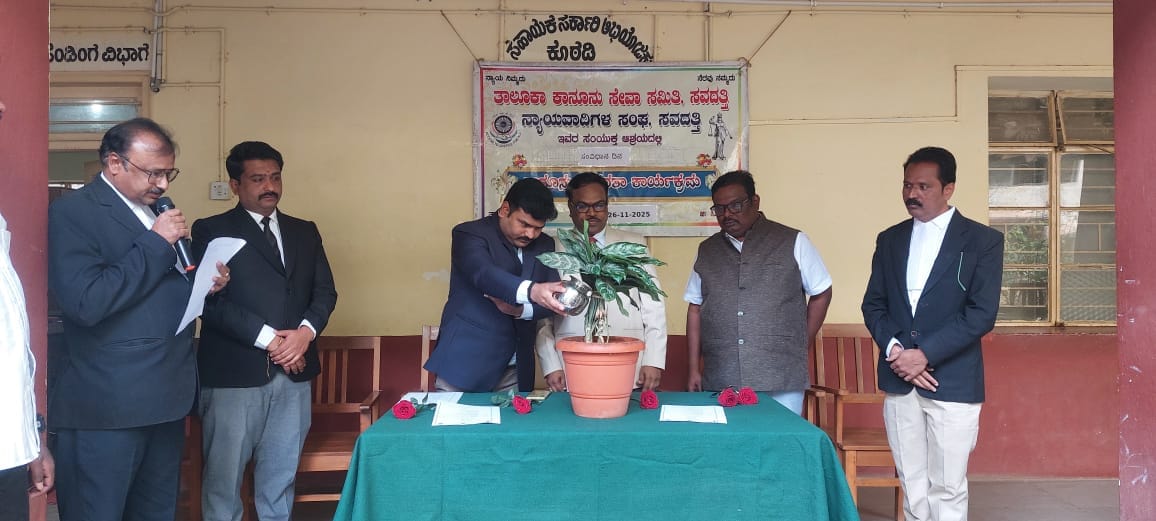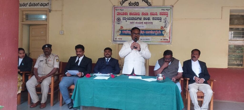 ಸವದತ್ತಿ ತಾಲೂಕಾ ಕಾನೂನು ಸೇವೆಗಳ ಸಮಿತಿ, ವಕೀಲರ ಸಂಘ ಇವರುಗಳ ಸಹಯೋಗದೊಂದಿಗೆ ನ್ಯಾಯಾಲಯದ ಆವರಣ ಸವದತ್ತಿಯಲ್ಲಿ ಸಂವಿಧಾನ ದಿನ ಅಂಗವಾಗಿ ಕಾನೂನು ಅರಿವು ನೆರವು ಕಾರ್ಯಕ್ರಮವನ್ನು ಹವ್ಮಿುಕೊಳ್ಳಲಾಗಿತ್ತು.