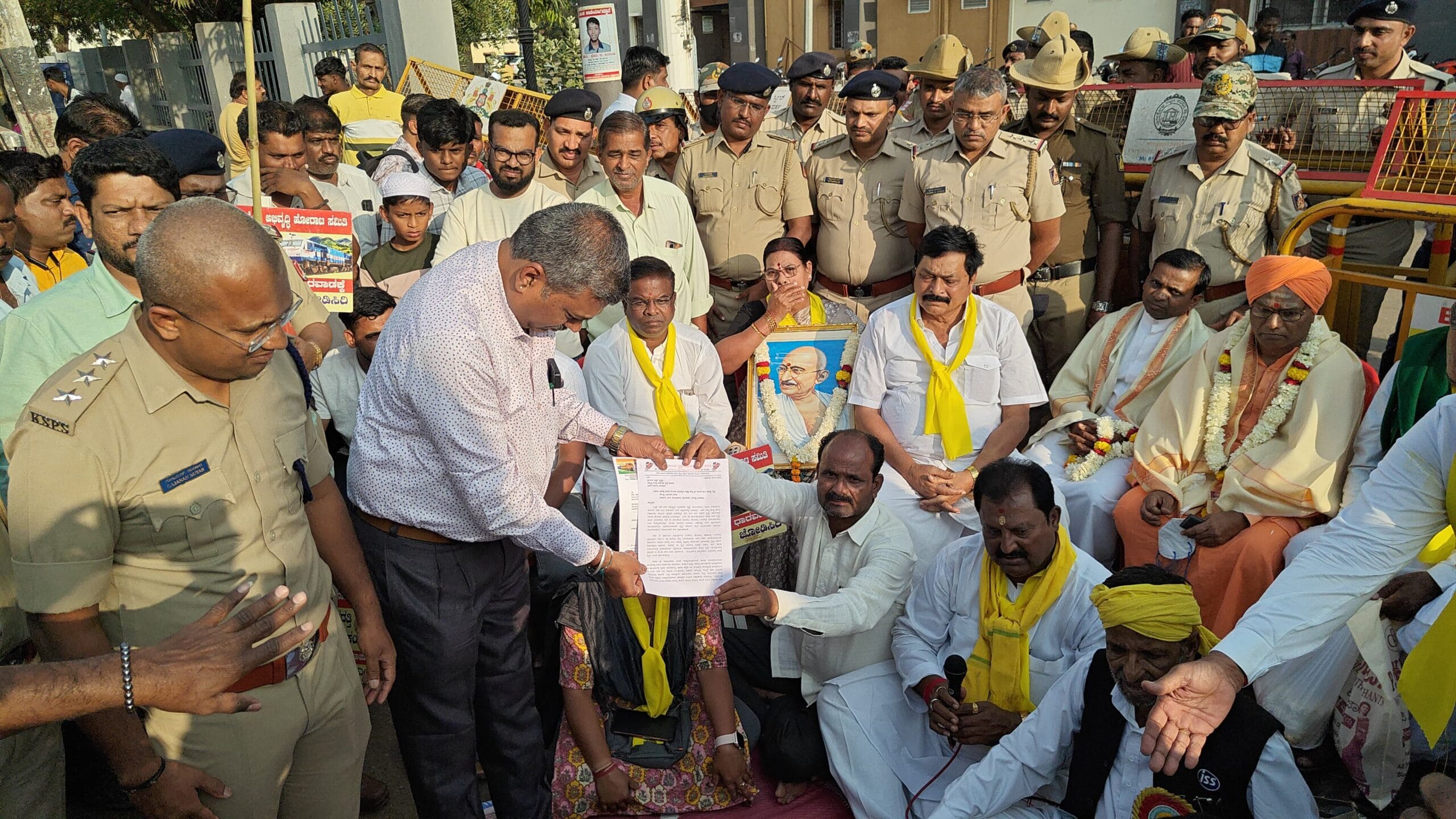 ರೈಲ್ವೆ ನಿಲ್ದಾಣ ಎದುರು ಪ್ರತಿಭಟನೆ ಹೋರಾಟದ ಸ್ಥಳಕ್ಕೆ ಬಂದ ರೈಲ್ವೆ ಅಧಿಕಾರಿಯಾದ ರಾಜಕುಮಾರ ಅವರಿಗೆ ಲೋಕಾಪುರದಿಂದ ಧಾರವಾಡದ ವರೆಗೆ ರೈಲ್ವೆ ಮಾರ್ಗದ ಕುರಿತು ರೈಲ್ವೆ ಹೋರಾಟ ಸಮಿತಿಯ ಸದಸ್ಯ M k ಯಾದವಾಡ ಮನವಿ ಅರ್ಪಿಸಿದರು.