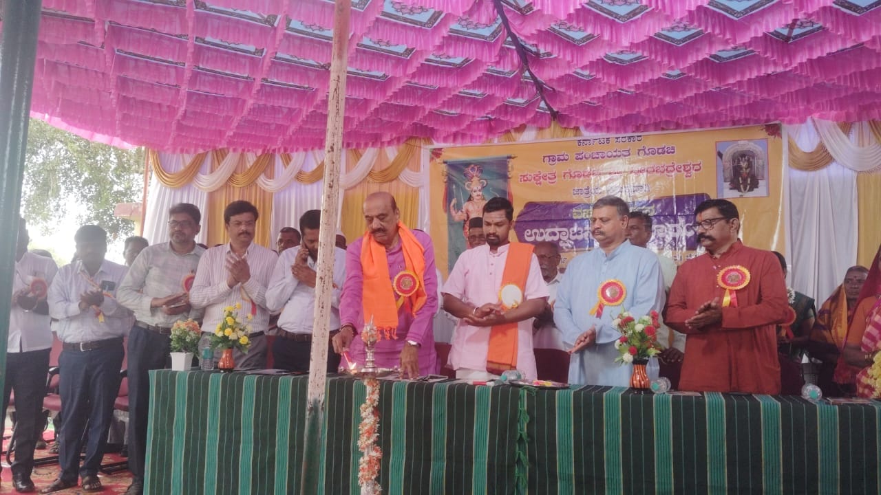 ಬೆಳಗಾವಿ ಜಿಲ್ಲೆ ರಾಮದುರ್ಗ ತಾಲೂಕಿನ ಗೊಡಚಿ ಗ್ರಾಮ ಪಂಚಾಯತಿ ಆವರಣದಲ್ಲಿ ಸುಕ್ಷೇತ್ರ ಗೊಡಚಿ ಶ್ರೀ ವೀರಭದ್ರೇಶ್ವರ ಜಾತ್ರೆಯ ನಿಮಿತ್ಯ ಗುರುವಾರ ವಸ್ತು ಪ್ರದರ್ಶನ ಕಾರ್ಯಕ್ರಮವನ್ನು ವಿಧಾನಸಭೆ ಮುಖ್ಯ ಸಚೇತಕ ಅಶೋಕ ಪಟ್ಟಣ ಜ್ಯೋತಿ ಬೆಳಗಿಸೋದರ ಮೂಲಕ ಉದ್ಘಾಟಿಸಿ ಮಾತನಾಡಿದ ಅವರು