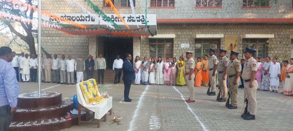 ಸವದತ್ತಿ, ತಾಲೂಕಾ ನ್ಯಾಯಾಲಯದ ಆವರಣದಲ್ಲಿ ನಡೆದ ಗಣರಾಜ್ಯೋತ್ಸವ ದಿನಾಚರಣೆಯ ಪ್ರಯುಕ್ತ ತಾಲೂಕಾ ನ್ಯಾಯಾಲಯ, ವಕೀಲರ ಸಂಘ, ತಾಲೂಕಾ ಕಾನೂನು ಸೇವಾ ಸಮಿತಿ ಸಹಯೋಗದಲ್ಲಿ ಮಹಾತ್ಮಾ ಗಾಂಧಿ ಹಾಗೂ ಅಂಬೇಡ್ಕರ ರವರ ಭಾವಚಿತ್ರಕ್ಕೆ ಮಾಲಾರ್ಪನೆ ಮಾಡುವುದರ ಜೋತೆಗೆ ಗೌರವಾನ್ವಿತ ಹಿರಿಯ ಶ್ರೇಣಿ ದಿವಾಣಿ ನ್ಯಾಯಾಧೀಶರಾದ ಶ್ರೀ. ಸಿದ್ದರಾಮ ಟಿ, ರವರು ದ್ವಜಾರೋಹನ ನೇರವೇರಿಸಿದರು ನಂತರ ನೇರದಿರುವ ಎಲ್ಲರೂ ರಾಷ್ಟ್ರಗೀತೆಯನ್ನು ಹಾಡಿದರು.